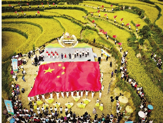 “9月是丰收的季节,五星红旗飘扬在梯田上,这画面非常美丽。”胡允冲说。