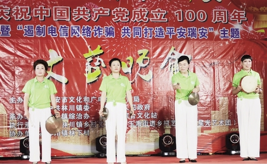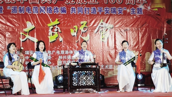 本报讯(通讯员 徐宏丰 记者 孙文静) “莲花落”和“三句半”是群众喜闻乐见的说唱曲艺艺术,其中“莲花落”被列入国家级非物质文化遗产名录。近日,市公安局创新推出两个反诈宣传文艺作品,分别采用“莲花落”和“三句半”的形式呈现,均用瑞安方言说唱,让群众倍感亲切。目前,两个作品在各乡镇、街道演出多场,观众反响热烈,直呼“又亲切又上头”“学到不少防诈骗知识”。