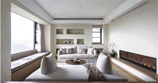 同时,利用飘窗特质,结合大面积窗户,通过借景的手法,将室外风景搬进家中。