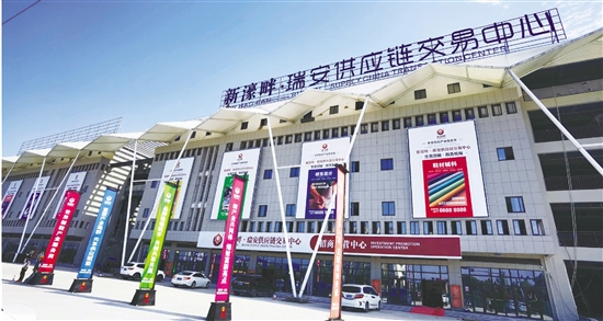 本报讯(记者 潘敏洁)近日,新濠畔·瑞安供应链交易中心正式揭牌。据悉,该中心将打造成瑞安鞋产业的“中央厨房”,助推我市鞋业发展。