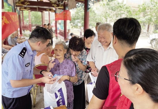场桥派出所:8月4日,场桥一小区举行老人公寓选房仪式,民警结合现场安保开展反诈宣传。期间,民警用通俗易懂的方式,详细讲解了网络刷单、网络贷款、冒充公检法等几种常见的网络诈骗手段和防范技巧,进一步增强了群众识骗、防骗能力。现场共有200余人参加,分发反诈宣传资料300余份。
