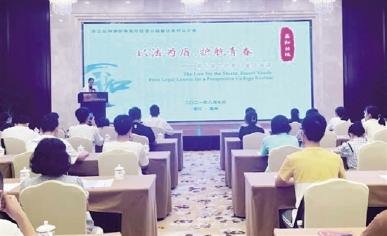 本报讯(记者 潘虹 通讯员 金蕾 吴畅)临近开学,一批准大学生即将走进大学校园。近日,市司法局联合浙江品和律师事务所,开设“以法为盾·护航青春”公益法治公开课,提高准大学生的校园防诈能力,筑牢安全防范意识。