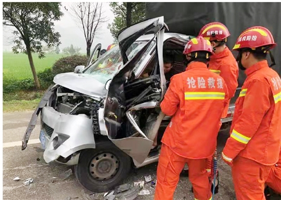 消防救援人员到达现场后发现,后方货车车头部位已严重变形,前挡风玻璃破碎,驾驶员被困驾驶室,双腿被卡。根据现场情况,救援人员立即利用液压剪和扩张钳对驾驶室车门进行破拆和扩张,成功营救被困人员。