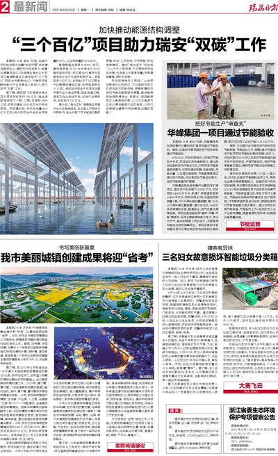 “三个百亿”项目助力瑞安“双碳”工作