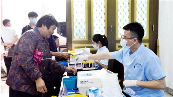 记者看到,前来排队体检的老人们络绎不绝。今年68岁的杨志纽,子女们在西班牙工作生活,他与妻子在家相伴。“去湖岭镇上体检,车程起码要半个多小时,这次能在家门口体检,真是太方便了。”他开心地说。
