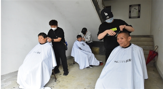 一把剪刀、一把梳子、一块理发围布……为了让老人们有一个新的面貌欢度重阳节,理发师志愿者给村里不便外出的老人免费提供理发服务。“好!好!很好看。”村里的杨大爷在镜子中看到理发后的自已,露出了开心的笑容。