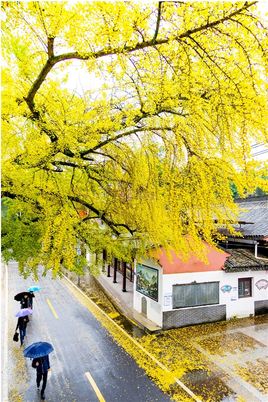 千年银杏树披“金甲”
