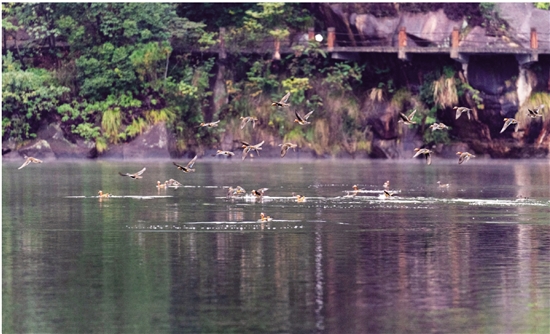 在素有“浙南小西湖”美誉的桐溪,每年11月至次年三四月,大批鸳鸯就会从北方迁徙至桐溪景区栖息,度过寒冬。
