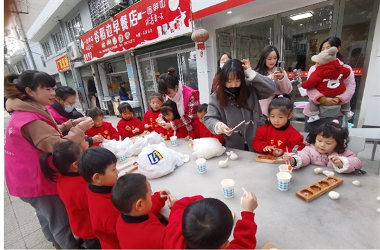 同日,在河埭桥社区居民活动中心,小朋友在家长的带领下,亲手制作了年糕。热腾腾的米团一出炉,就立刻拿出来放在石臼里,大家轮番上阵,你搡我翻,你一下我一下,不一会儿热腾腾的年糕米香四溢。年糕捣制好后,孩子们最开心了,纷纷围着桌子,将捣制好的年糕放入模具里定型,不一会儿,就做成了元宝、小老虎、小兔子等各种造型的年糕。吃年糕,年年高。通过捣年糕活动增加了社区年味、留住了“乡愁”,营造了欢乐喜庆、温馨和谐的节日气氛。