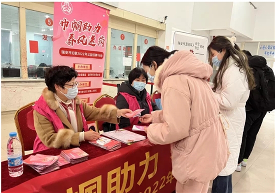 本报讯(记者 陈京子 通讯员 赵夜子)“我可以干这份工作吗?”“有哪些工作适合我?” 2月中旬,不少妇女来到2022年瑞安市春风行动公益现场招聘会,寻找就业机会。据统计,整个活动共有3场招聘会,共有参展企业210家,提供15900个就业岗位,其中女性岗位数达到5320余个。