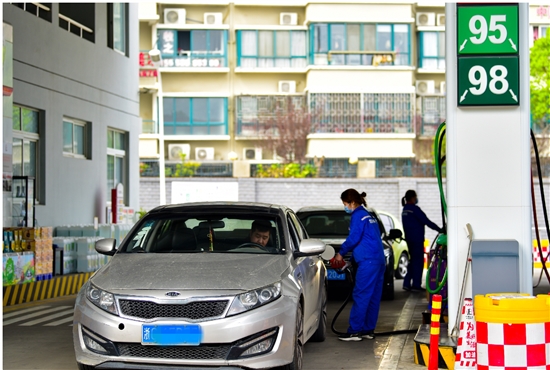 近日,国内成品油价格完成新一轮上调 。92号汽油每升上调为8.61元,95号汽油每升上调为9.16元。调价后,按一般家用汽车油箱50升容量计算,加满一箱95号汽油,则多花31元。图为车主在市区莘阳大道加油站加油。 (记者 王鹏洲)