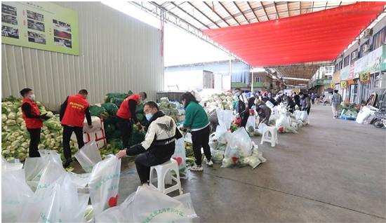日前,瑞明集团50多名员工在市农贸城把各类蔬菜、肉、鸡蛋等食物分装到特制的袋子里,装车驰援上海。记者在现场看到,袋子里的物资非常丰富,有猪肉、鸡翅、鸡蛋、黄瓜、尖椒、白萝卜、胡萝卜、包菜、玉米、西蓝花、土豆、蒲瓜、白菜、生姜、大蒜等十几种,每一份物资重达17公斤左右,能够满足一户家庭五天的日常食物需求。