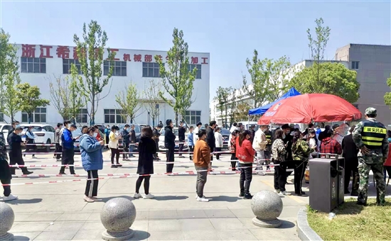 连日来,上望街道在薛前村、多彩工业园区设核酸采样点,组织街道社区卫生服务中心医护人员在相关区域开展全员核酸采样工作。广大党员干部、民兵、志愿者齐上阵,轮班维护现场秩序。