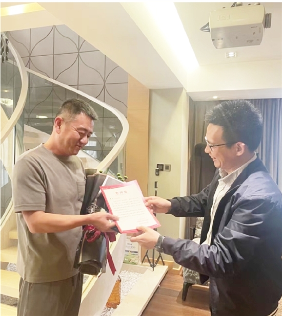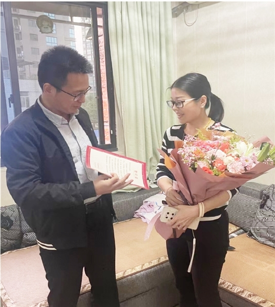 本报讯(记者 金汝)4月19日,莘塍街道组织慰问人员,为“抗疫”一线干部代表送去暖心慰问。慰问人员一行来到街道机关干部陈洪波、高向的家中,向其家属表示问候,向仍然奋斗在集中隔离点的陈洪波、高向表达敬意。
