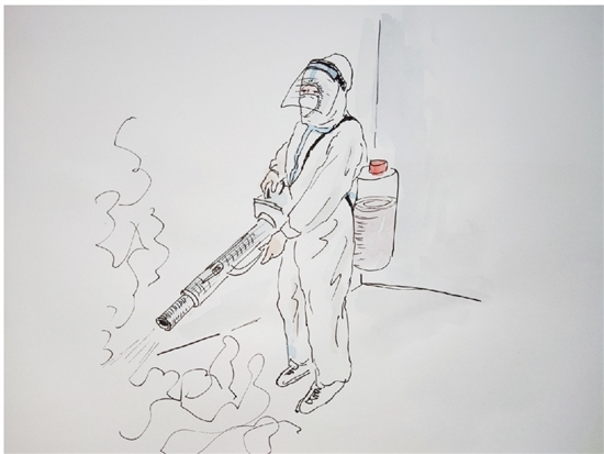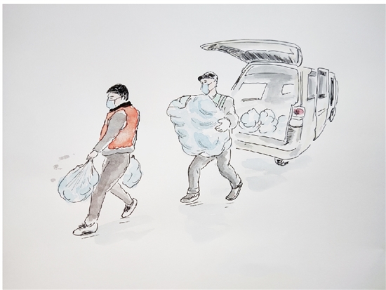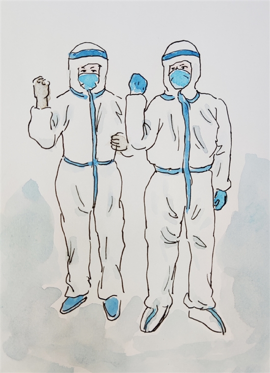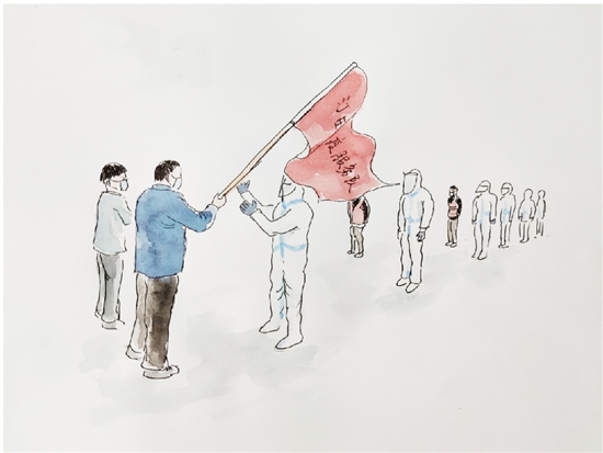 在结束应急演练后,汀田街道宣传委员余盛强拿起画笔“复盘”,针对其中10个重要场景,用直观的漫画形式予以描绘,进行“复盘”总结,做好防控宣传工作。