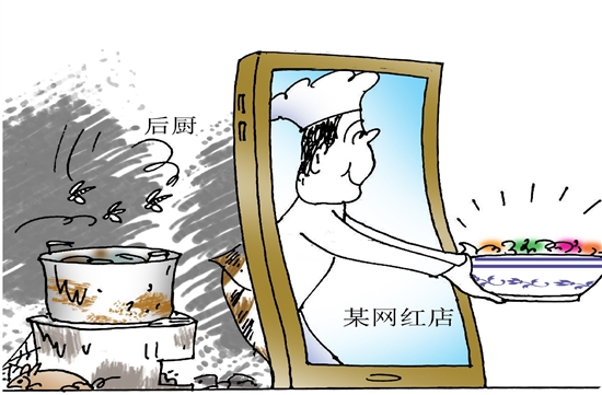 近日,《法治日报》记者查询各地市场监管部门公开通报的食品安全检查结果发现,自2019年以来,“网红”餐厅、新式茶饮连锁品牌成为食品卫生安全问题的“高发地”——原料过期、食材掉地又回锅、生熟混放、餐具不消毒、后厨脏乱…… (陶小莫 画)