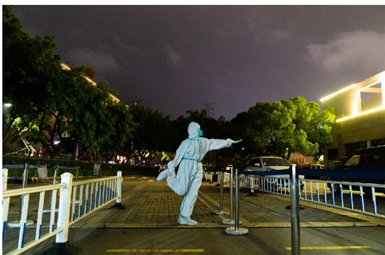 17时45分左右,再次接到任务的蔡明明继续来到检测点开展核酸采样工作,直至晚上20时才结束。