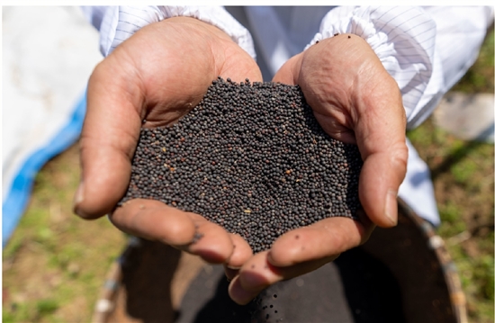 陈学海站在田里一边检查今年油菜籽的收获情况一边说:“传统榨油是对油菜籽进行物理挤压,保住了原汁原味。今年的日照好,再加上农户们坚持施有机肥,精心照料下的油菜籽饱满。肯定能榨出香甜的菜籽油来。”