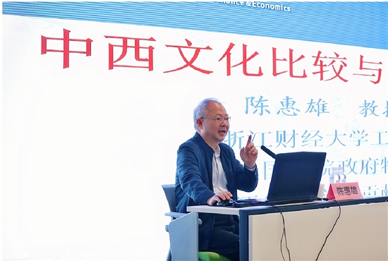 随后,浙江财经大学人本经济研究所所长、教授陈惠雄带来了玉海讲坛“文化赋能 精神共富”专题的首次讲座《人文社科的文化维度与共同富裕建设》。