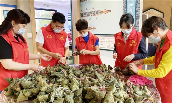 端午节来临之际,瑞安农商银行南滨支行联合南滨街道南爿村开展红色星期天“粽叶飘香迎端午”活动,送服务、送知识、同包“幸福粽”。