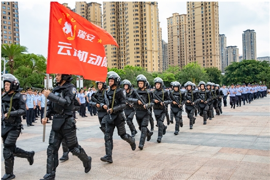 市委副书记、政法委书记李辅正作动员讲话时指出,参战同志要以“时时放心不下”的责任感和“坐不住、等不起、慢不得”的紧迫感,不断提升防范、发现、应对、化解风险隐患的能力和水平,全力维护我市社会平安稳定;深入开展安全隐患大起底大整治、矛盾纠纷大排查大调解,努力将风险隐患解决在基层、化解在萌芽;坚持以打促防、以打促治,第一时间侦破寻衅滋事、聚众斗殴等违法犯罪,严厉打击盗窃、电信网络诈骗等侵财犯罪,最大力度保护妇女、儿童、老人等群体安全;持续推进巡防力量摆上街面、沉入社区,紧盯党政机关、城市广场、夜市地摊等人员密集场所,切实增强社会治安控制力,让人民群众充分感受到安全就在身边。