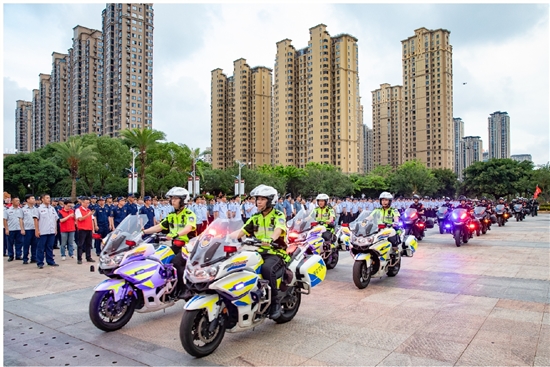 本报讯(记者 陈京子/文 通讯员 朱昌乐/图)“我宣布,我市护航党的二十大安保维稳暨夏季社会治安大巡防正式启动!”6月29日晚,随着市委书记麻胜聪的一声令下,顷刻间警灯闪烁、马达轰鸣,现场26个方阵770余名巡防人员、16辆巡逻车辆闻令开拔,开展路面巡逻和社会治安整治。