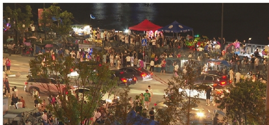 当阳光依依不舍,拖着晚霞的裙摆留恋的时候,瑞城已经华灯初上。在炎炎夏日的夜晚,有什么比在江边吹着风、吃着美味的夜宵更让人舒适的?飞云江五桥附近的“月光经济带”,就在市民这样的需求下,自发地应运而生。
