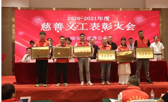火热的夏天,火红的马甲,见证了瑞安慈善事业的红火。7月9日,2020至2021年度瑞安市慈善义工表彰大会举行,130余名慈善义工服务队代表相聚一堂。会上,40个义工单位获评“2020—2021年度慈善义工服务工作先进单位”,180名义工获“2020—2021年度慈善义工先进个人”荣誉称号,501名义工获评“星级义工”称号。