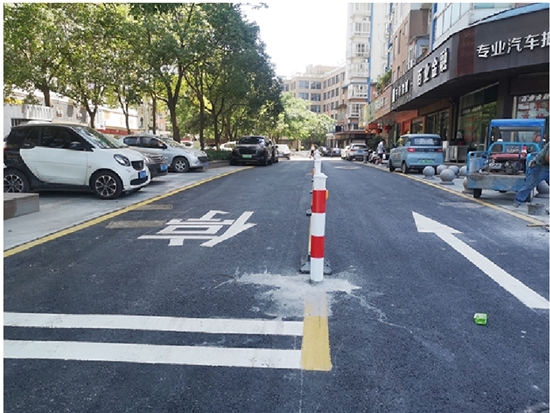 6月下旬,施工队进场。7月8日,记者在现场看到,逸景路改造提升已完成:路面铺上了崭新的沥青,画上了交通标线,还用隔离栏分隔出了双车道,几名工人在清运人行道上的垃圾。据悉,这段改造提升的逸景路全长约120米,面积约1000平方米。除了车行道,该中心对人行道也做了提升。