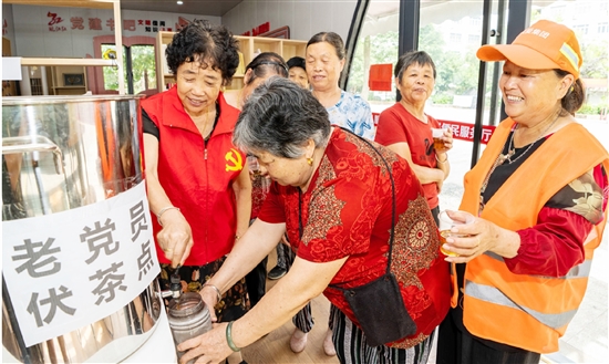 近段时间天气炎热,在湖岭镇党群便民服务厅的老党员伏茶点,前来喝茶的村民络绎不绝。“这么热的天,喝伏茶对身体有好处,我倒了满满的一大杯。”村民王阿姨住在附近,经常“光顾”伏茶供应点,每次都会装上一些伏茶带回去给家人喝。我市大大小小的爱心伏茶点,一杯杯消暑的茶水给市民带来了清凉。