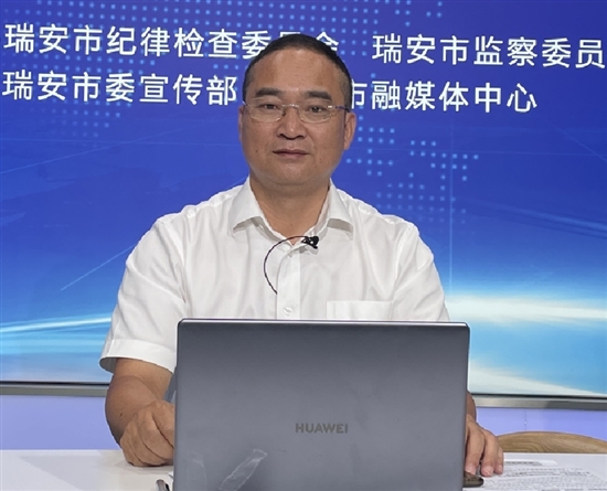 本报讯(记者 欧苗苗 通讯员 陈瑞兆)日前,温州市生态环境局瑞安分局党组书记、局长池志刚做客《作风建设·局长在线》。在直播过程中,市民就环保审批、生态环境监管、污染防治等参与现场讨论。针对听众打进的热线、网友在微信公众平台上的留言等,池志刚也予以答疑解惑。当天还邀请了市政协委员贾建东、市民监督员虞建新参与直播。