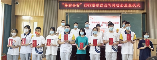 本报讯(记者 欧苗苗 王晓阳)昨日上午,“侨助共富”2022蔡建霞教育奖助金发放仪式在市九中举行,共发放奖助金10万元。