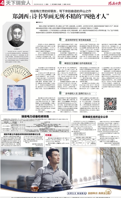 一提起郑剑西,上了年纪的瑞安人大多知道一些关于他的故事。如今,他的学识和成就仍为后人所津津乐道。“才人”这个词原是南戏中对演艺人员的称呼,郑剑西是京剧界名流,“才人”自是对他最恰当的称谓。