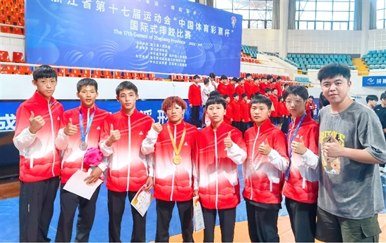 9月6日,第十七届浙江省运动会摔跤比赛在金华兰溪体育馆闭幕。7名瑞籍运动员在赛场上努力拼搏,共取得3金1银3铜的好成绩。其中,林亮宇获男子乙组古典式摔跤54公斤级冠军,兰仁垟获得甲组自由式摔跤50公斤冠军,林君豪获得丙组团体冠军。