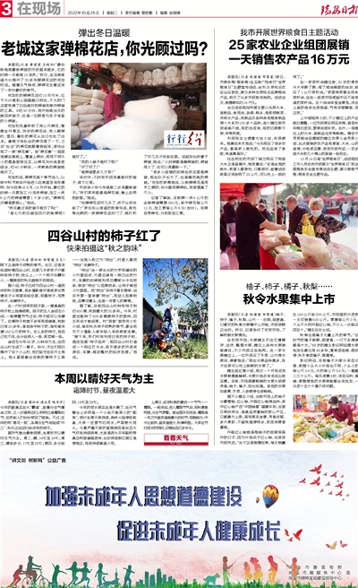 本报讯(记者 黄君君 王晓阳)“最近新做或翻新棉被的市民越来越多,忙的时候一天能做10来床。”昨日,在玉海街道大沙堤开了30多年弹棉花店的何加权说。随着天气转凉,弹棉花生意迎来了一年中最好的季节。