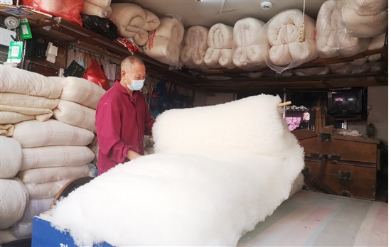 市民徐小玲今年是第二次来翻新被子。“我们家床垫都是棉花被,躺上去特别舒服。”她说。