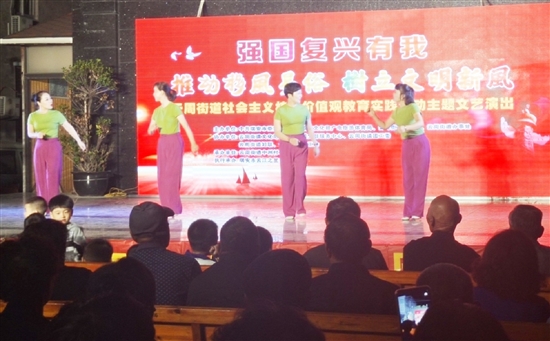 为深入推进移风易俗工作,着力破除陈规陋习,10月26日晚一场以“推动移风易俗 树立文明新风”为主题的文艺演出在该街道举办,各类歌曲、小品、舞蹈、戏曲节目轮番上演,营造推进移风易俗、树立文明新风的浓厚氛围。“将文艺演出与移风易俗宣传相结合,让我们在观看精彩文艺节目的同时,还能学到一些移风易俗的常识,很有意义。”前来观看演出的张阿姨说。