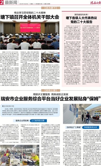 “如今,市企业服务综合平台已经成为瑞企与市委市政府沟通的‘连心桥’、为企解难题的助推器,通过为企业提供政策咨询、政策推送等个性化、精准化、高效化的政务服务,为瑞安高质量发展提供服务支撑。”市经信局相关负责人说。