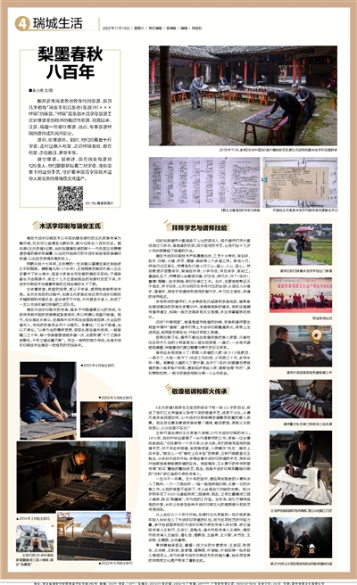 盛世修谱。据统计,现在瑞安有谱师120余人,他们默默耕耘着二尺字盘,用祖宗留下的这份手艺,守护着中国活字印刷术这份人类宝贵的非物质文化遗产。