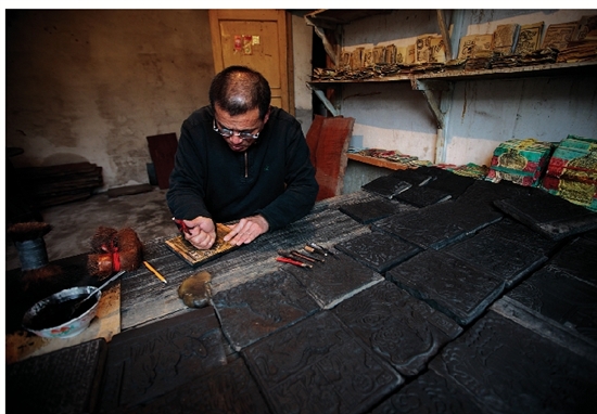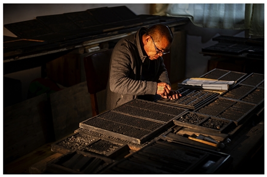 一生只干一件事。五十年的坚守,曾经英俊挺拔的小青年步入了晚年,一刀一刀地刻字,一版一版地排版印刷,日复一日的伏案工作,让他的背直不起来了,手上全是刻刀划破的伤痕。他26岁那年花了6000元盖起两间二层楼房,现在,又把它翻建成三层小楼房,取名“梨墨斋”,作为他的工作室。近年来,他忙于接待各地的访客,长年义务参加各种木活字印刷文化的推荐展示和技艺传授活动。