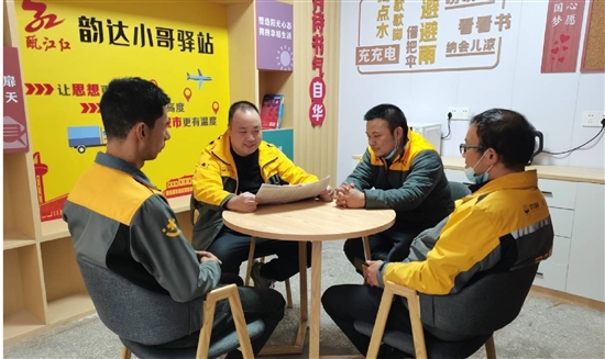 本报讯(记者 金汝 通讯员 张霞)11月23日,走进瑞安市韵速物流有限公司“瓯江红·韵达小哥驿站”,温馨的气息扑面而来:这个“小哥驿站”设立了员工图书柜、小哥补给站、党员活动室等功能区,供快递小哥学习、娱乐。