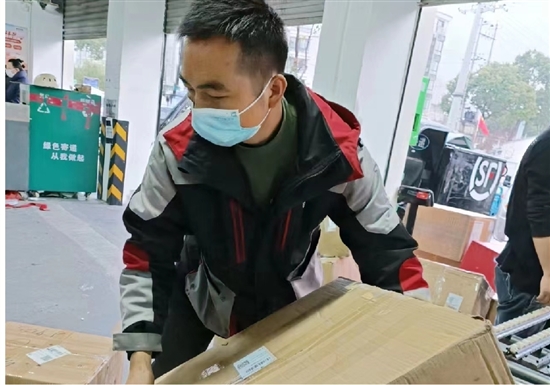 1月25日7时30分,东山街道顺丰网点已是一片忙碌的景象。顺丰速递专车停在网点外,大量包裹从传送带输送过来。快递员马超龙站在传送带前,挑拣出自己要配送的快件。“大件包裹放在车顶,优先配送生鲜,剩下的按规划好的路线分类。”他将包裹整齐有序地放在车上,动作一气呵成。