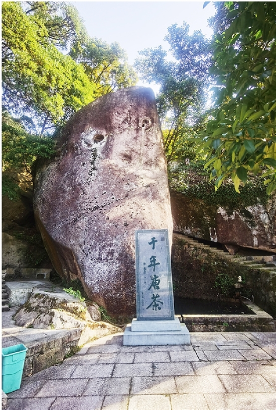 我上洞、中洞,下洞地穿梭。静下心来,竟隐约地听到流水声。四下寻找,又觅不到流泉。等再静下心,似乎又消失了。这给我们增加了一丝神秘感——与十余年前,真的不同了,那时的这株茶树株根很是完整,枝繁叶茂。导游告诉我,李唐宗室李集曾于此避难,此树即他所植。记得我还曾写下一首诗:“李唐宗室植云烟,万壑溪声桂魄圆。劫难一生终过往,岩中修炼已千年。”(《五月初六化成洞参拜千年茶神》)