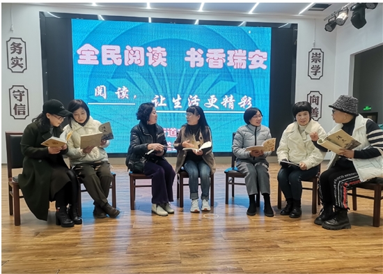 本报讯(记者 金汝 通讯员 郑晓洁)春风浸书香,阅读正当时。2月27日晚上,莘塍街道文化驿站传出阵阵朗读声,100多名莘美艺术团朗诵群成员齐聚一堂,齐声诵读精彩文摘,分享阅读心得。