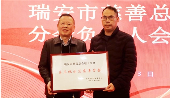 其中,瑞安市慈善总会塘下分会荣获第三批“浙江省示范慈善分会”称号。塘下慈善分会成立于2006年,2022年该分会共募集慈善资金255万余元,开展各类救助支出741万余元,全年慰问困难群众5000多人次。