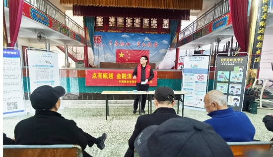 在马道村文化礼堂,志愿者们向来到现场的40多名老人发放防范电信诈骗、消费者权益保护及征信等相关内容的宣传手册,同时进行现场讲解,提醒大家妥善保管好银行卡、身份证,不向陌生人汇款。
