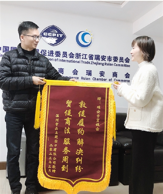 本报讯(记者 黄丽云 通讯员 许小鹤)“感谢省、市贸促会联动,提供专业援助,为企业纾困解难,成功为我们挽回损失。”3月7日上午,在市贸促会办公室,温州品立进出口有限公司(以下简称“品立公司”)总经理谢育添感激地说。