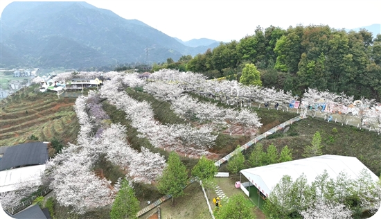 眼下正是赏花踏春的好时节。3月28日上午,由市文广旅体局和湖岭镇共同举办的2023瑞安巿湖岭樱花艺术节在小王子主题农庄开幕。一条长长的“樱花大道”两旁,粉白色樱花挂满枝头,清香四溢,美得醉人。美丽的樱花配上农庄内精美的装饰,使得这里成为“网红打卡点”,吸引了不少游客前来欣赏樱花盛开的春日美景。