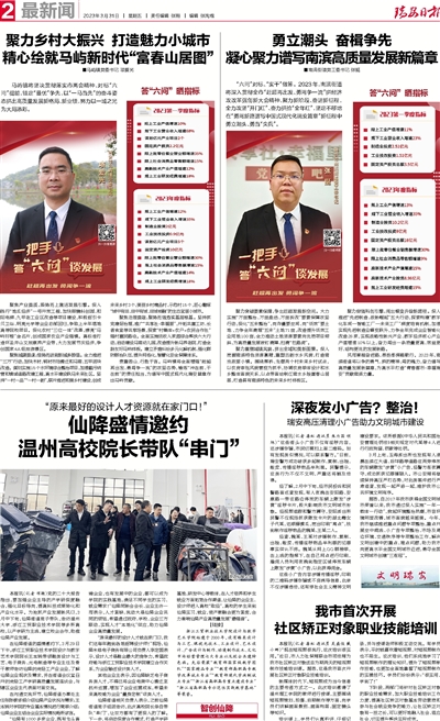 “六问”对标、“实干”做答。2023年,南滨街道将深入贯彻全市“赶超再出发、勇闯争一流”拼经济攻改革强创新大会精神,聚力新阶段、奋进新征程,全力攻坚“开门红”、奋力拼抢“全年红”,坚定不移地在“勇闯新路谱写中国式现代化瑞安篇章”新征程中勇立潮头、勇当“尖兵”。
