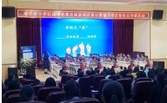 本报讯(记者 吴戌慧 通讯员 颜一曼)4月7日下午,瑞安市小学区域特色赋能项目展示暨塘下教育学区校长公开课活动在塘下实验小学举行,通过校长论坛、校长课堂及专家点评等形式,进一步提升校长教育教学管理能力与课程领导力,及时总结与展示核心素养指引下的教学新理念、新课标学习成果。市教育发展研究院各学科教研员,全市各小学校长、副校长、教导主任等代表共260余人参加活动。